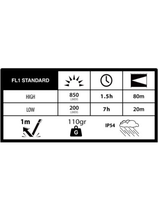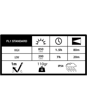 - Moc światła: 850 lm (wysoka), 300 lm (średnia), 70 lm (niska)